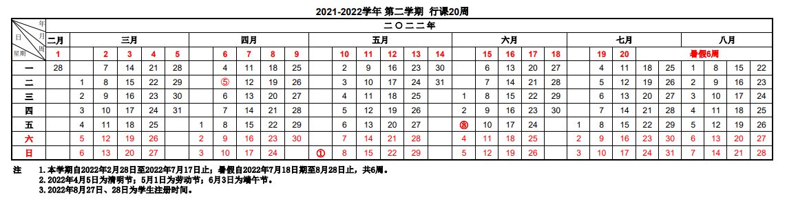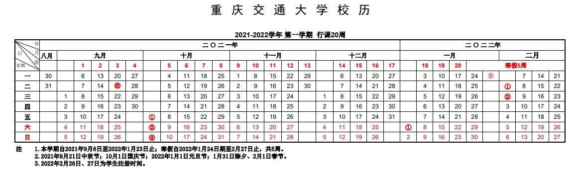 重庆工商大学2021—2022学年校历 重庆大学2020-2021学年校历