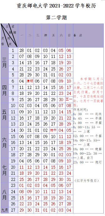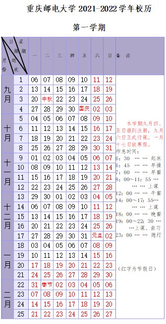 重庆邮电大学2021—2022学年校历(重庆邮电大学2021毕业时间)