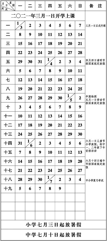 六月一日儿童节:小学放假,初中一、二年级下午安排活动。