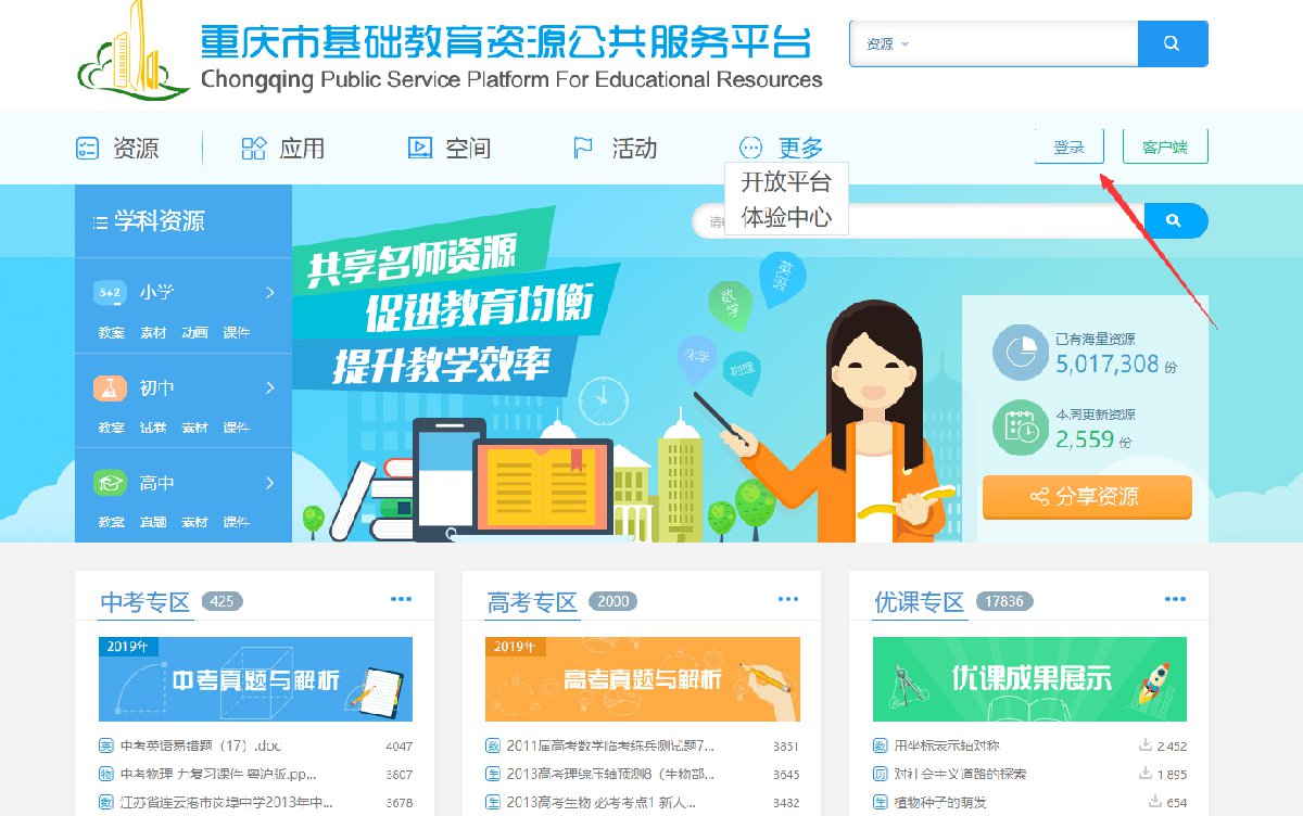 重庆市基础教育资源公共服务平台PC端网址:http://res.jjpt.cqedu.cn/cms-portal/resourceHome.html
