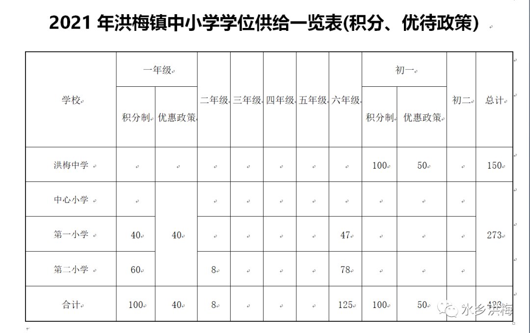 日前,东莞各镇街2021年积分入学学位公布,洪梅镇共为义务教育阶段非户籍适龄儿童少年提供积分制入学和优待政策学位423个,其中小学阶段273个,初中阶段150个。