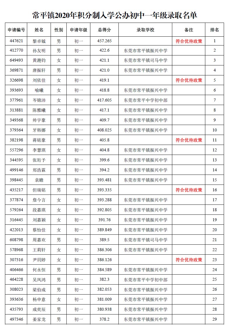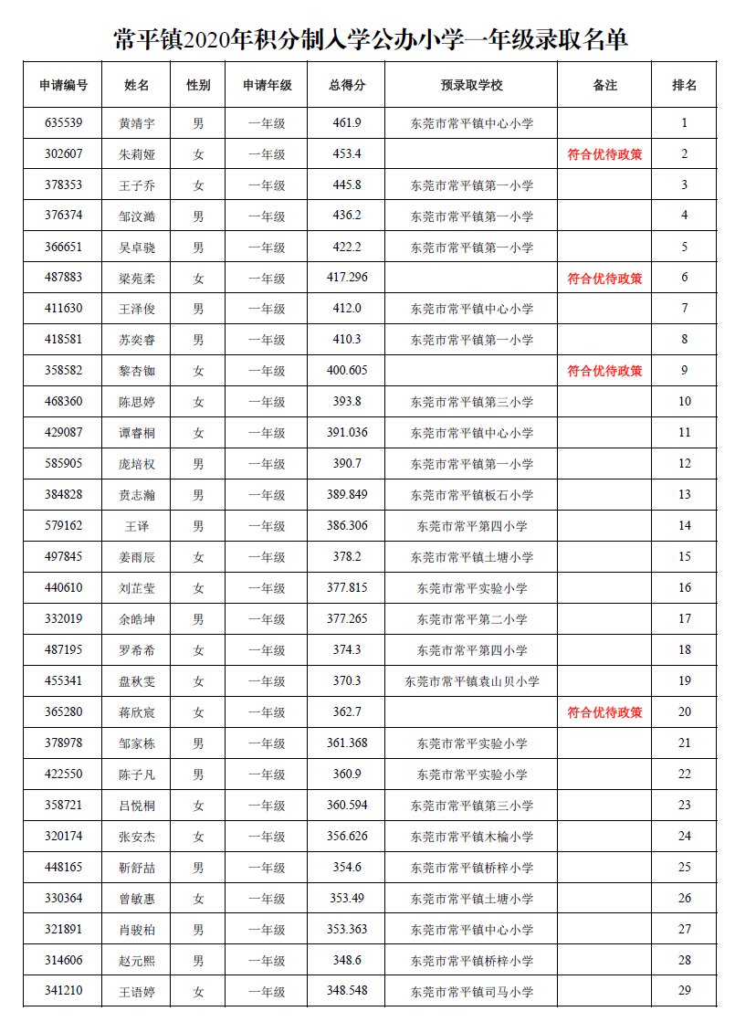 2020东莞常平积分入学名单汇总 东莞常平积分入学名额