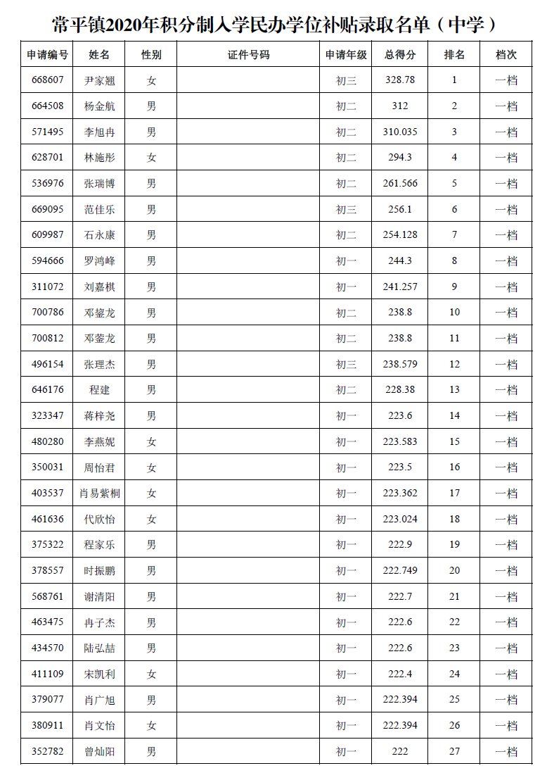 根据《东莞市义务教育阶段非户籍适龄儿童少年积分制入学积分方案》有关规定,现将我镇2020年非户籍适龄儿童少年积分制入学公办学校录取情况和享受民办学位补贴的名单向社会公示。