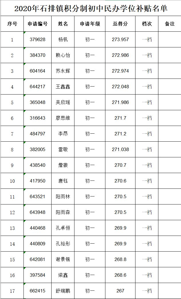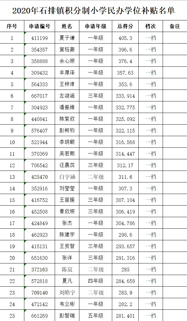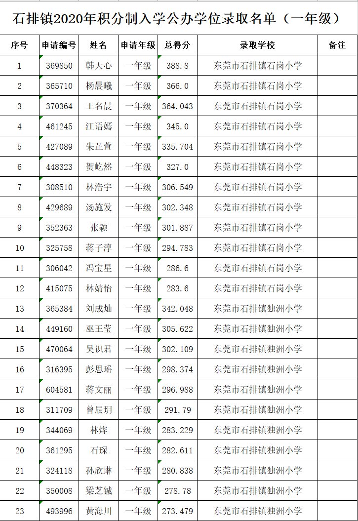 2020东莞石排积分入学录取名单一览 2020东莞石碣积分入学入围