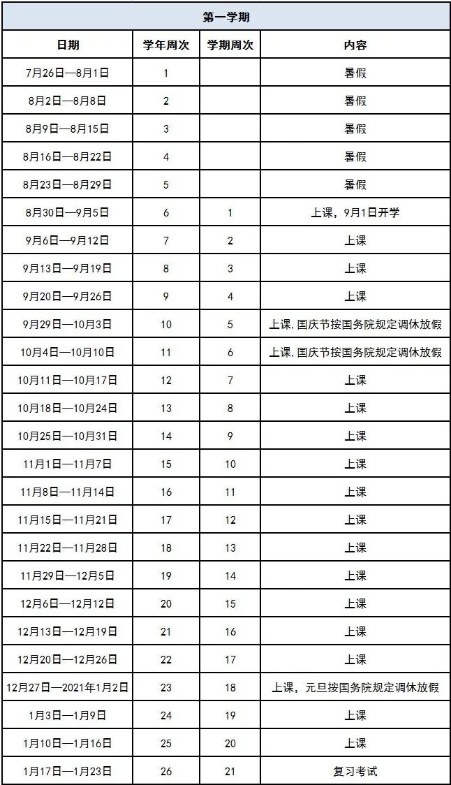 2. 2020—2021学年度小学、初中的寒假起始时间为2021年1月24日(含当天,以下皆同),暑假起始时间为2021年7月11日。