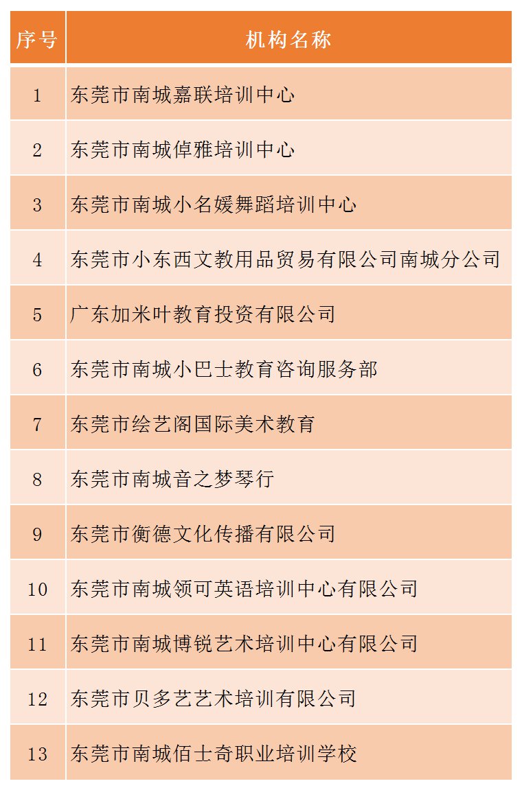 东莞南城第4批校外培训机构恢复名单 东莞南城第4批校外培训机构恢复名单公示