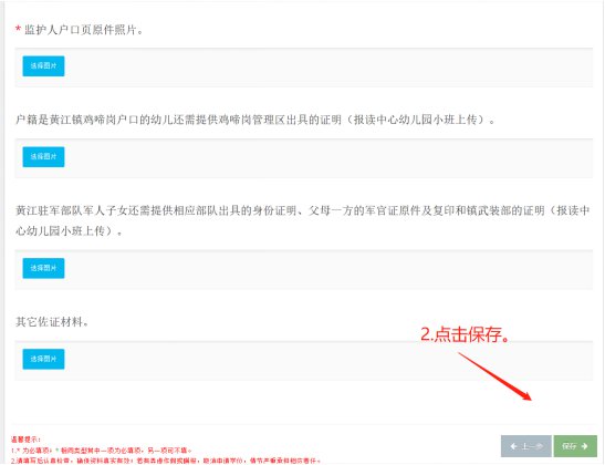 2.3.3 上传申请资料(图2.3.3)与保存申请信息(图2.3.4),上传资料完成之后一定要点击“保存”按钮,否则无法提交申请。