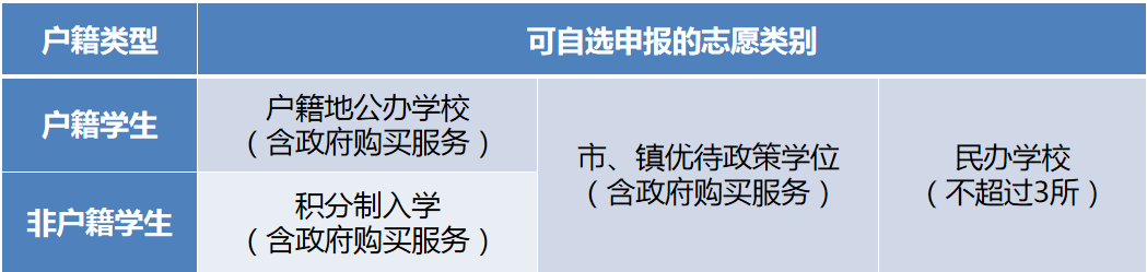 (1)户籍地公办学校:由户籍地教育部门统筹安排学位。请家长认真阅读户籍地中小学招生入学方案;