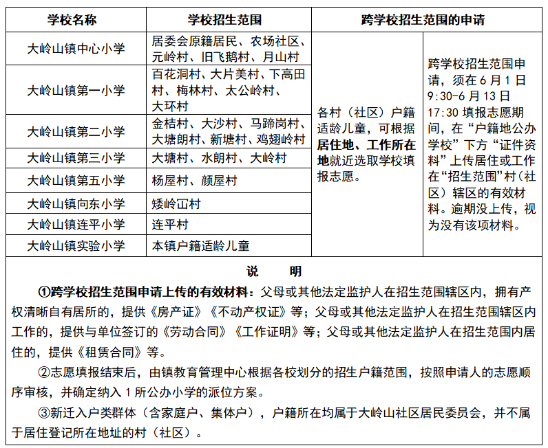 一、截至2022年5月18日17:30前已入户大岭山镇,并且在招生平台报名,通过审核的户籍适龄儿童少年。