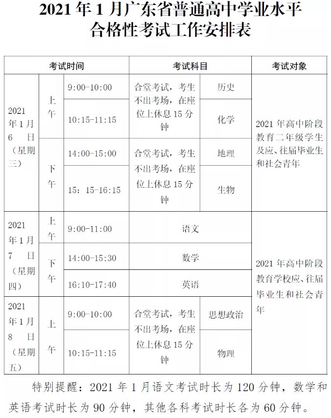 2021东莞高中学业水平考试时间为2021年1月6日至8日。