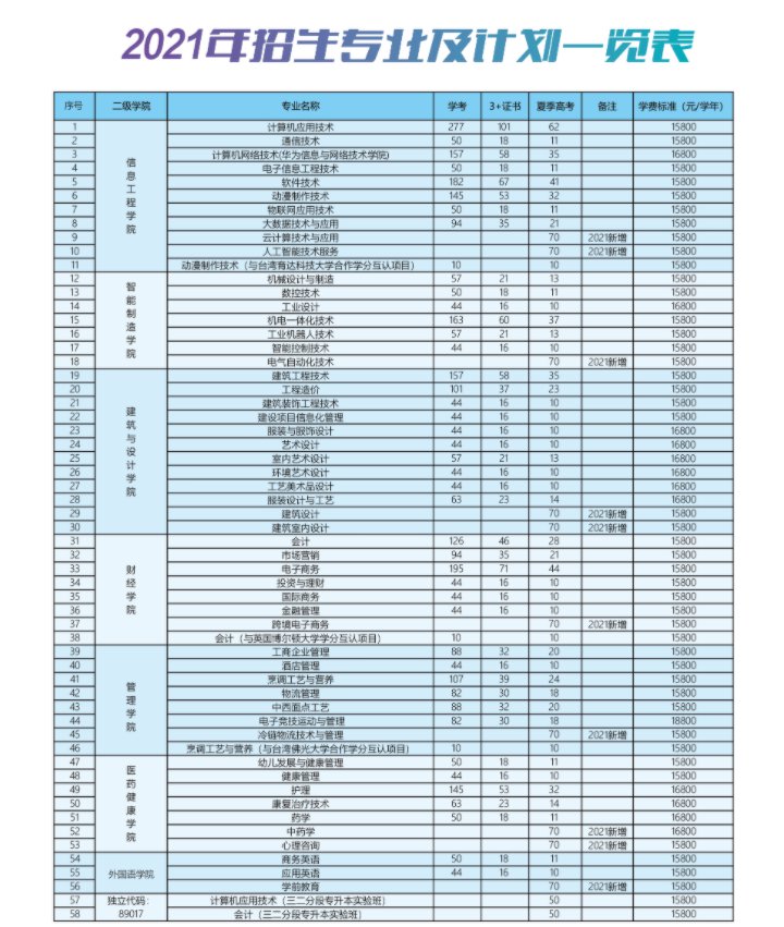 2021广东创新科技职业学院招生专业及计划