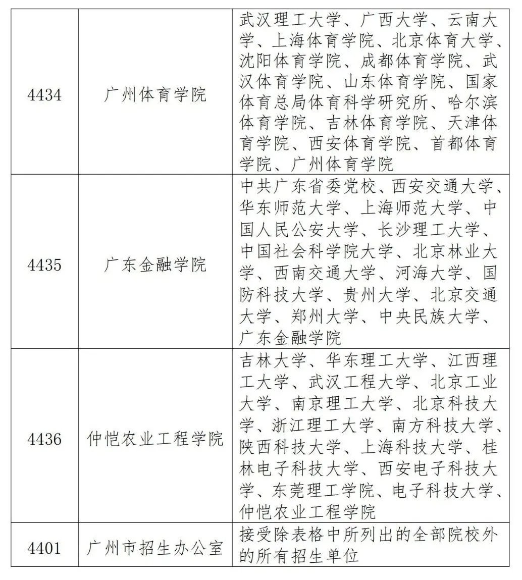 3.拟在广州市报名参加考试的考生,需按报考点接受范围进行报考,见下表: