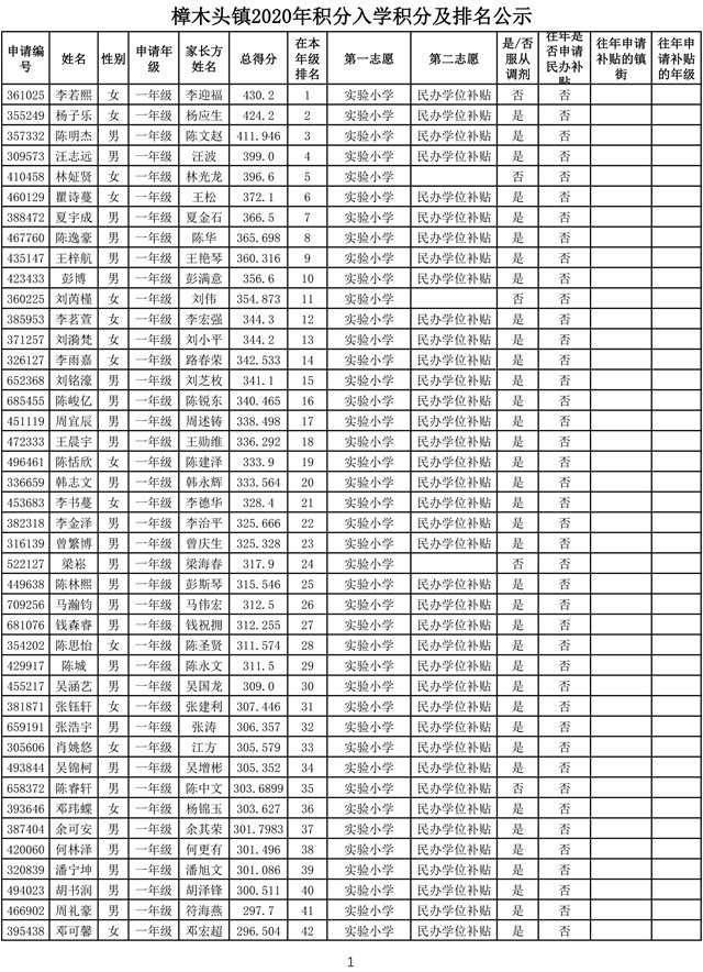 根据《东莞市非户籍适龄儿童少年接受义务教育实施办法》(东府〔2020〕31号)和《东莞市义务教育阶段非户籍适龄儿童少年积分制入学积分方案》(东府〔2020〕32号)有关规定,结合我镇积分入学学位供给数以及申请人的积分情况,现将各年级申请人的积分及在年级的排名公示如下。