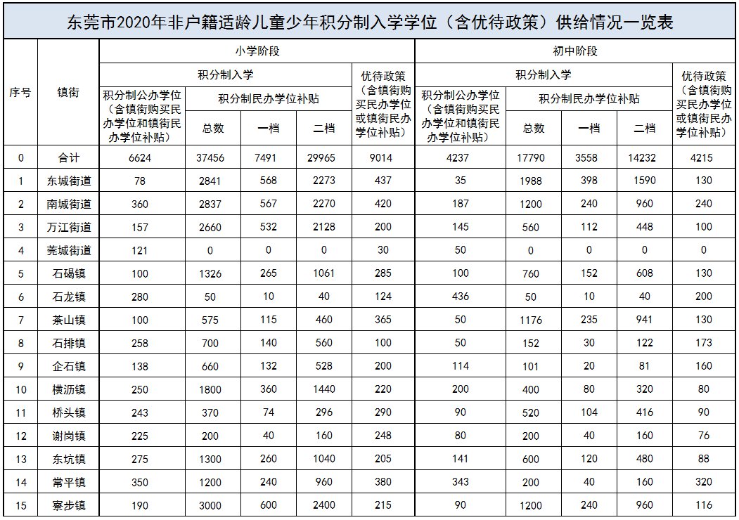 为更好解决我市非户籍适龄儿童少年接受义务教育问题,根据《东莞市非户籍适龄儿童少年接受义务教育实施办法》(东府〔2020〕31号)和《东莞市义务教育阶段非户籍适龄儿童少年积分制入学积分方案》(东府〔2020〕32号)精神和要求,今年各园区、镇(街道)通过挖掘公办学位潜力和实施积分制入学民办学位补贴政策等方式,努力提高义务教育阶段非户籍适龄少年儿童教育公共服务均等化水平,确保2020年在义务教育阶段公办学校就读及在民办学校就读享受学位补贴的随迁子女人数占比不低于50%。