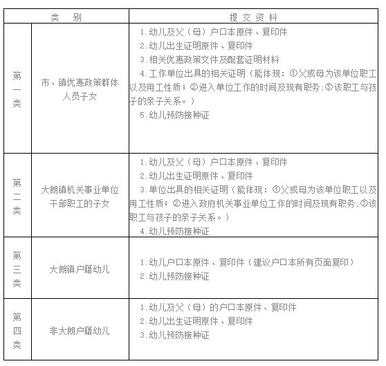 2. 如属于第一类市、镇优惠政策群体人员,请携带已填好的《大朗镇中心幼儿园幼儿入读申请表》及第三点中要求的证明材料,于5月18日至5月22日期间到镇教育管理中心212室进行现场报名(联系人:叶老师;联系电话:83018830,18922519366)。
