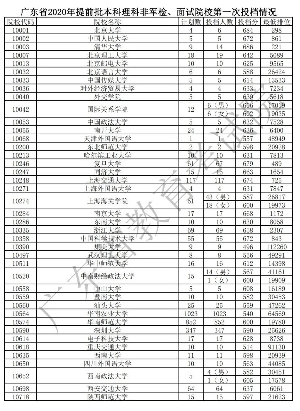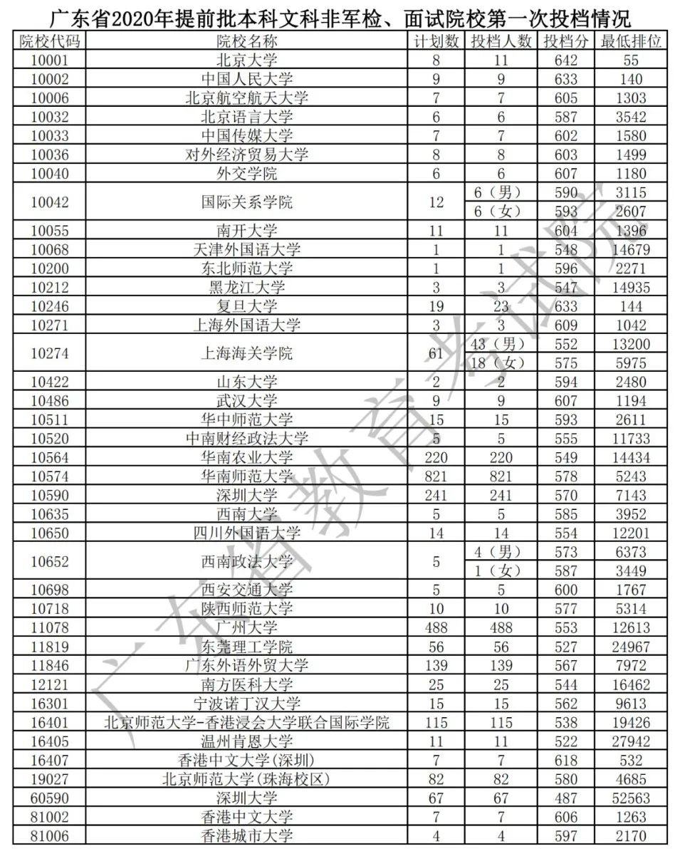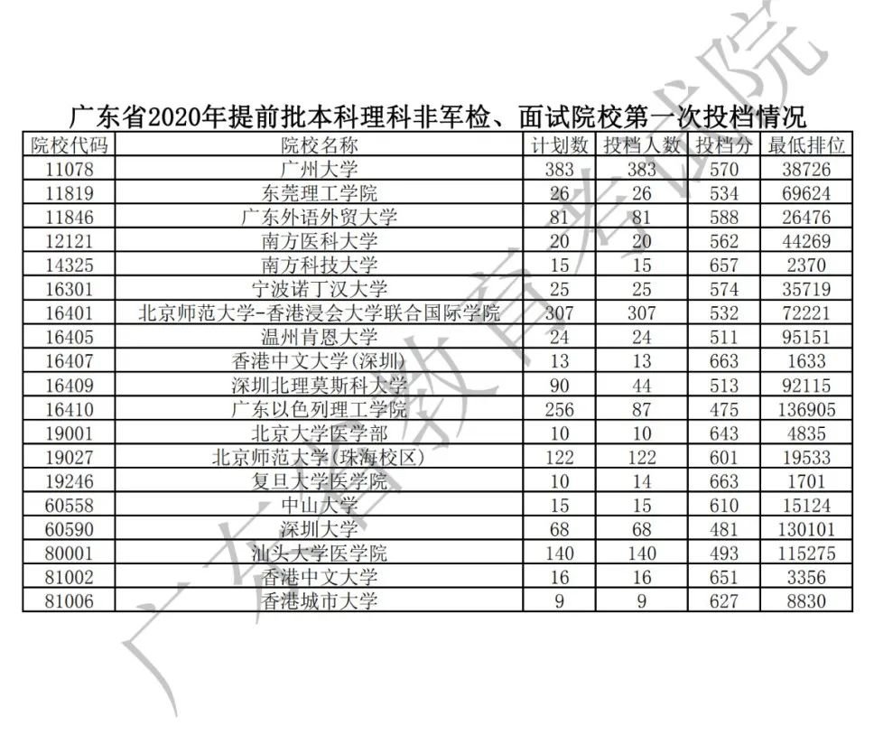 2020年8月7日,广东省2020年夏季普通高校招生录取工作正式开始,首批开始投档的是提前批院校。