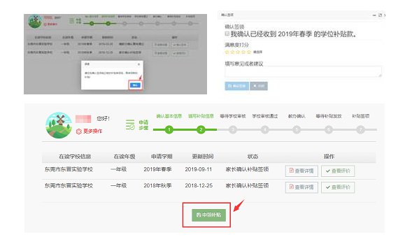 由于去年系统升级,部分申请人还没对春季学位补贴进行签领评价,这部分申请人可以根据系统指引,先完成春季的签领评价后再点击“申领补贴”进行本学期的补贴申领(首次申领的忽略这步)。
