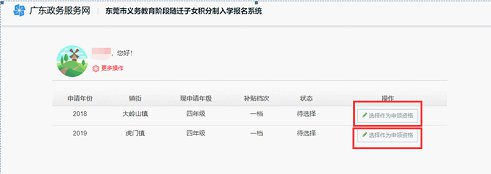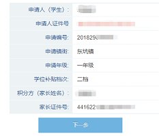 注意:由于有个别申请人去年和今年在不同镇街提出积分入学申请,在两个镇街均获得学位补贴资格,该类申请人须先根据系统提示,先选择确认本学期在哪个镇街申领补贴(即目前就读民办学校所在的镇街),再进行后续步骤。