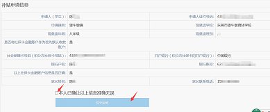 (二)延续申领学位补贴:上学期已经申领过学位补贴的,系统会显示上学期账户信息,家长认真校对,如有变动的,可以自行在系统上进行修改,没有修改的,直接点击确认提交。