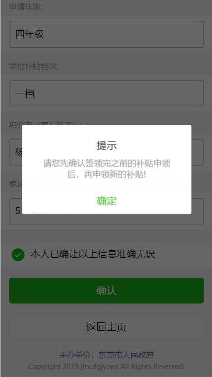 由于去年系统升级,部分申请人还没对春季学位补贴进行签领评价,这部分申请人可以根据系统指引,先完成春季的签领评价后再进行本学期的补贴申领。(首次申领的忽略这步)