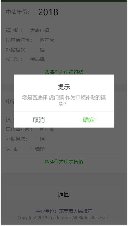 注意:由于有个别申请人去年和今年在不同镇街提出积分制入学申请,并在两个镇街均获得学位补贴资格,该类申请人须先根据系统提示,先确认选择在哪个镇街申请学位补贴(即目前就读学校所在的镇街),再进行后续步骤。