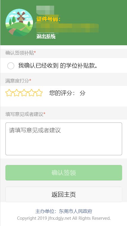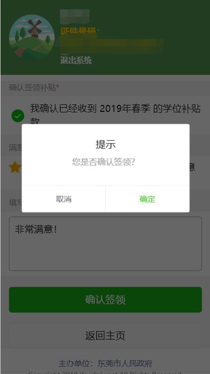 申请人家长收到学位补贴款后,请在本学期结束前重新登录系统“学位补贴签领”,确认收款,并对本次学位补贴工作进行评价。注意:不进行签收确认的申请人,将影响下学期学位补贴领取。