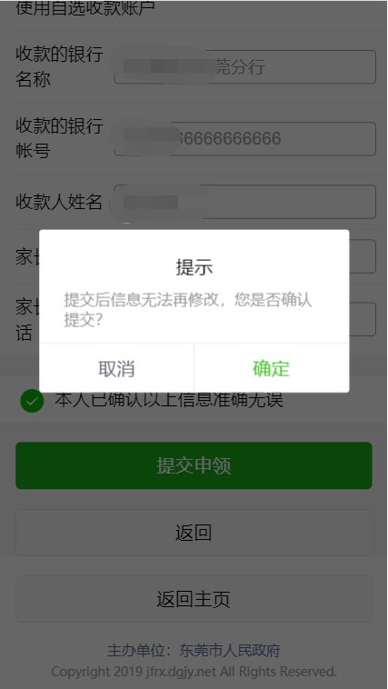 申请人点击提交后,系统显示申请人所有申领信息,如确认无误后,勾选本页面底部“本人已确认以上信息准确无误”,并点击“提交申领”。提醒:信息提交前,申请人家长可以进行不限次数信息修改;但提交后,信息不能进行修改。因涉及经费下拨,请各家长务必确认所有信息无误再提交,否则后果自负。