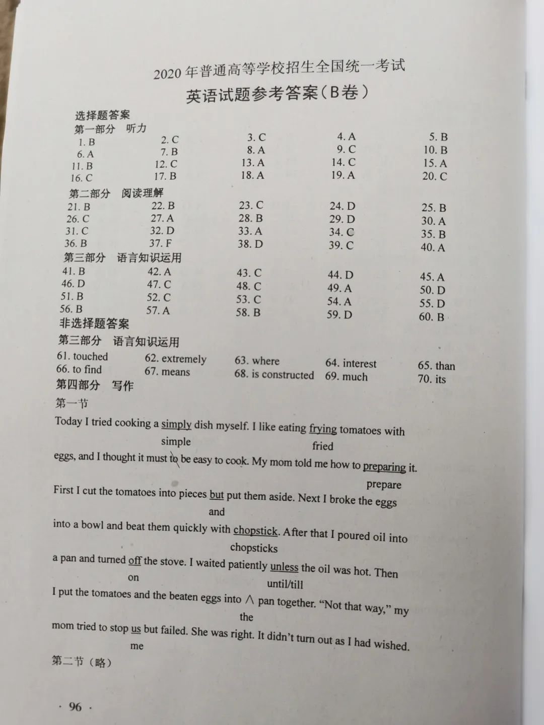 广东2020年高考英语试卷参考答案(广东2020年高考英语试卷参考答案解析)