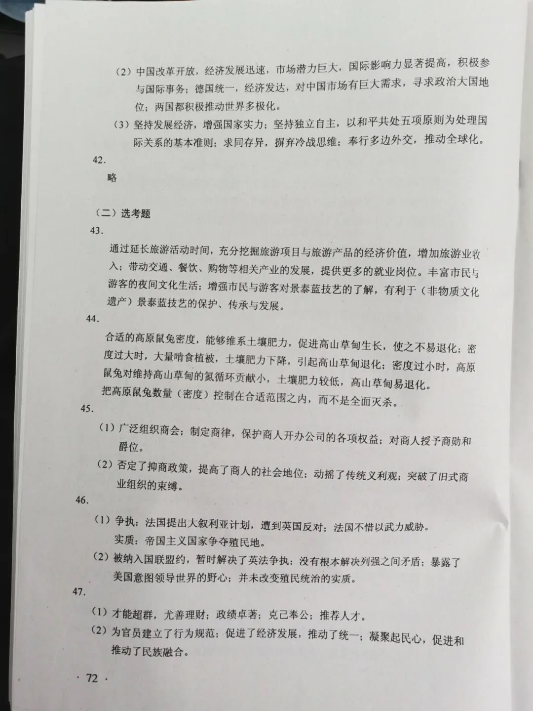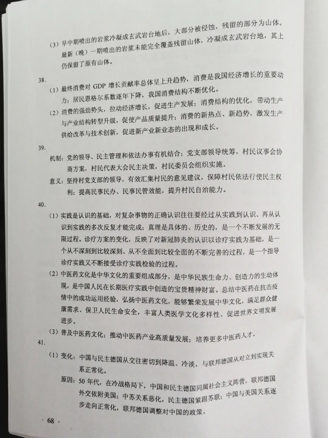 2020年广东高考文综试题AB卷参考答案(2020高考文综全国二卷)