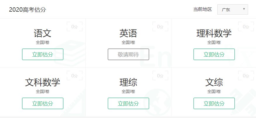 备注:大家可以自行选择科目进行估分,除了广东,也可以选择其他省(市区),各地使用试卷如下