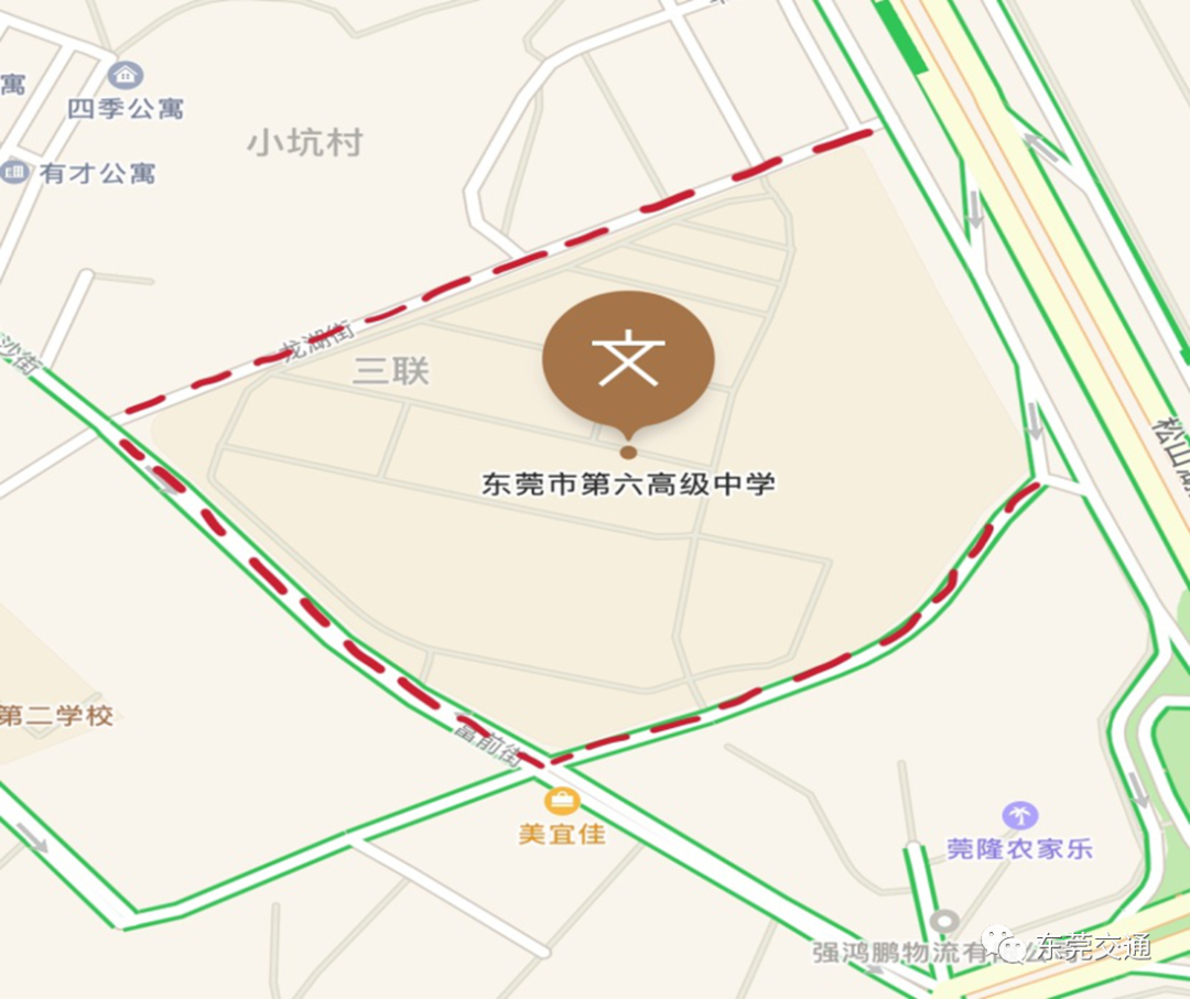 2、松山湖大道东莞第六高级中学路段采取“禁鸣喇叭”措施。