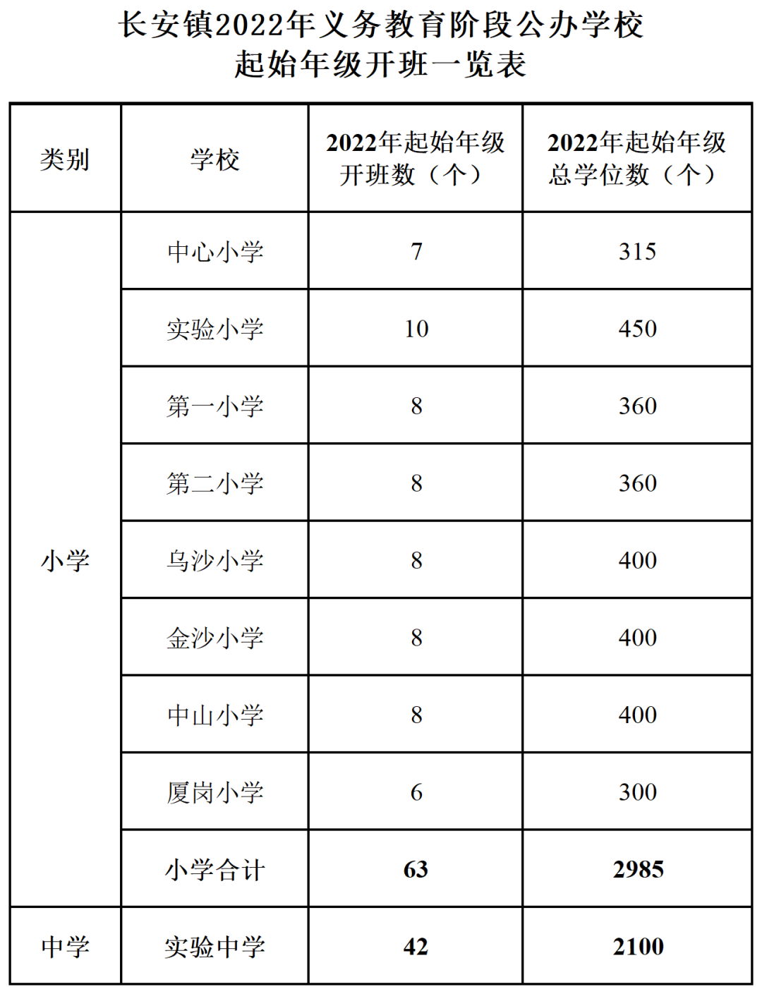 公办初中一年级:计划开设42个班,拟招生2100人。
