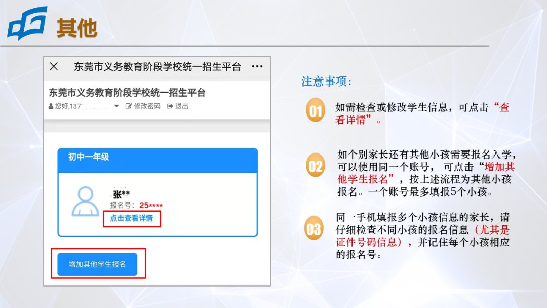 2021年是东莞市义务教育阶段学校招生全面推行网上报名的第二年,申请人须按照正式报名时间重新登录招生平台报名。