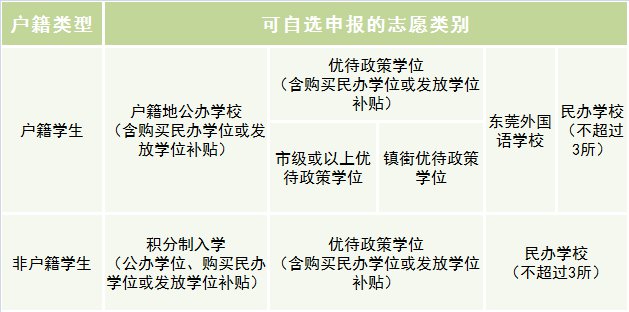 举例来说,学生小东,莞城户籍,家长持有《东莞市优才卡》并在南城工作,今年升读小学一年级。根据小东情况,可在以下四类学位中选择一类或多类填报志愿:(1)户籍地公办学校,即莞城公办学位;(2)《东莞市优才卡》优待政策学位,即南城学位;(3)东莞外国语学校;(4)不超过3所的民办学校。
