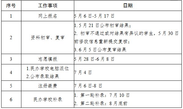 今年(2021年)全市义务教育招生从5月6日开始报名,7月中旬基本结束,还有剩余学位的民办学校可以在8月底前进行补录。各主要工作事项时间安排如下: