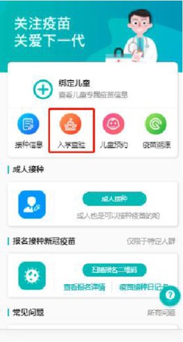 绑定儿童姓名、出生日期等信息,之后点击按钮“入学查验”。