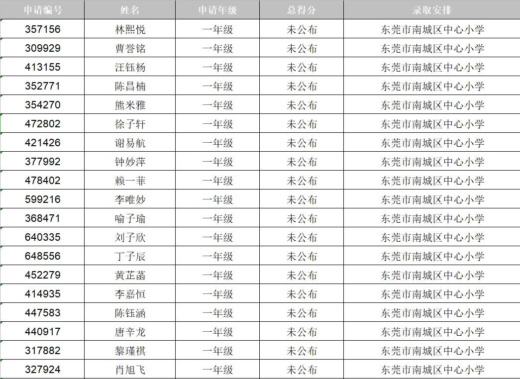 2020东莞南城积分入学录取结果一览(2019年东莞东城积分入学一览)