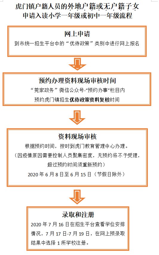 2020年虎门镇户籍人员的外地户籍或无户籍子女申请入读小学一年级或初中一年级指引