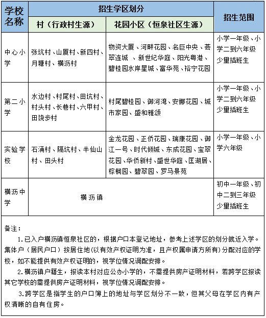 2020东莞横沥中小学招生方案(东莞横沥学校)