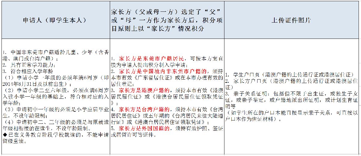 符合积分制入学申请的随迁子女,积分方式、积分内容、申办流程和日程安排等按照《东莞市非户籍适龄儿童少年接受义务教育实施办法》(东府〔2020〕31号)《东莞市义务教育阶段非户籍适龄儿童少年积分制入学积分方案》(东府〔2020〕32号)以及有关补充通知执行。