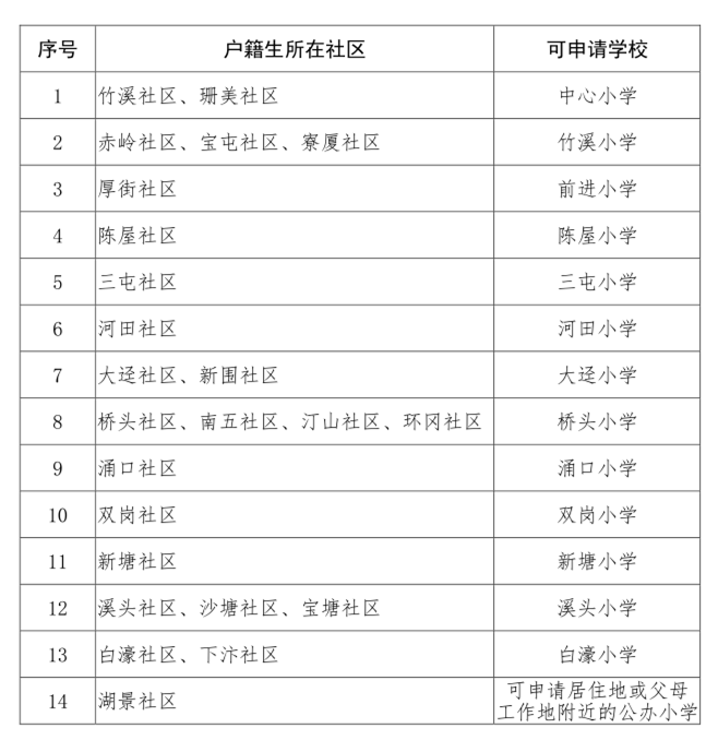 厚街镇各社区户籍学生可申请公办小学一览表