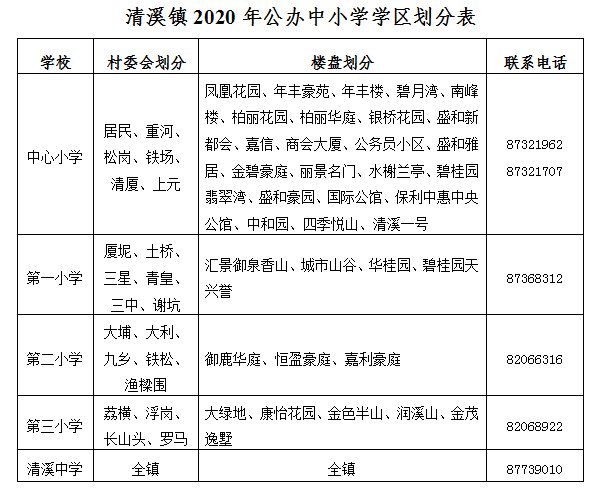 公办学校:清溪户籍生、市镇优待政策群体、积分制入学群体