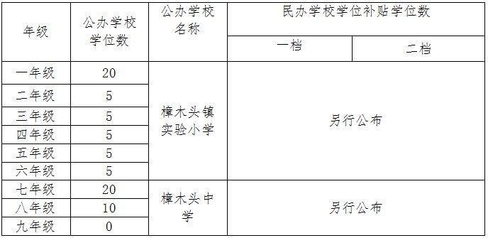 注:①若学区学位不足,则由镇教育管理中心根据报名情况,适当调整学位。