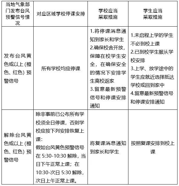 台风天气影响下停课安排及应当采取的措施:
