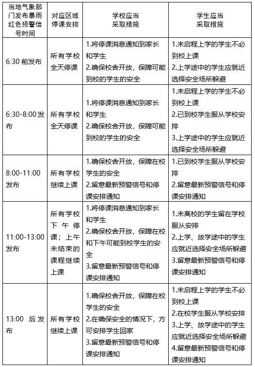 暴雨天气影响下停课安排及应当采取的措施: