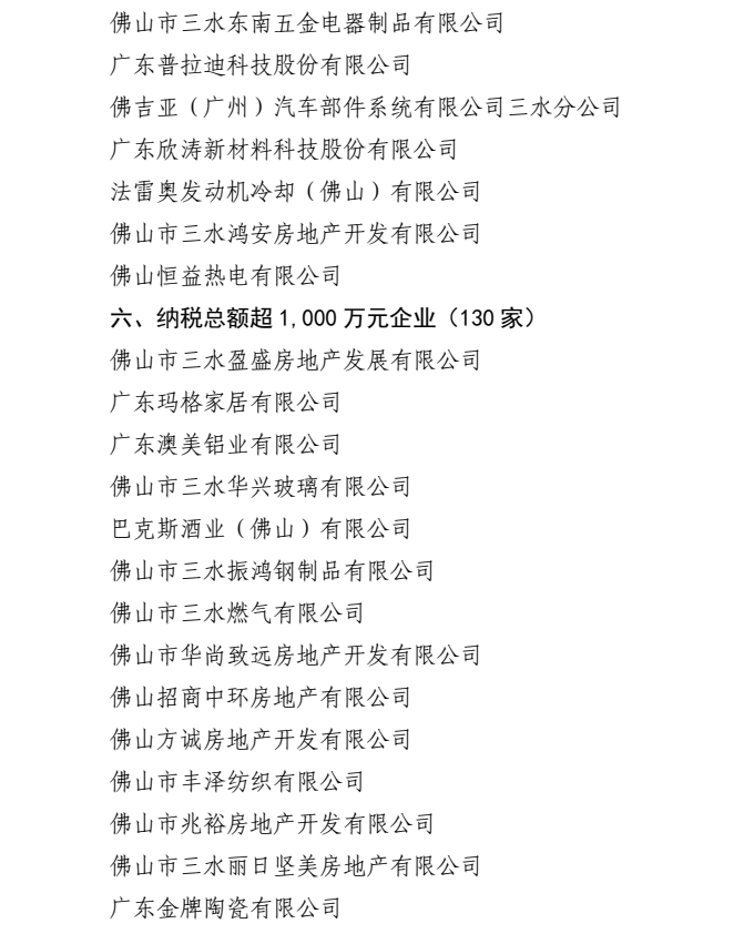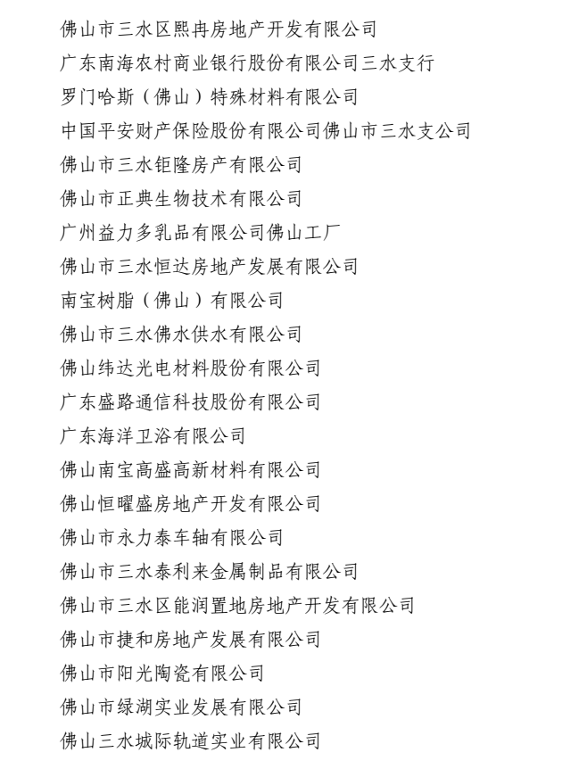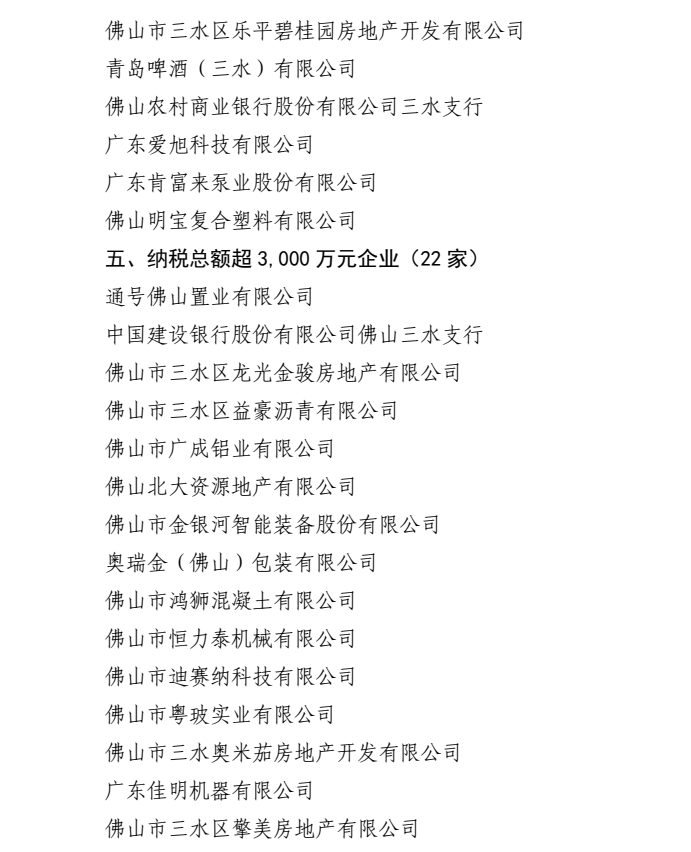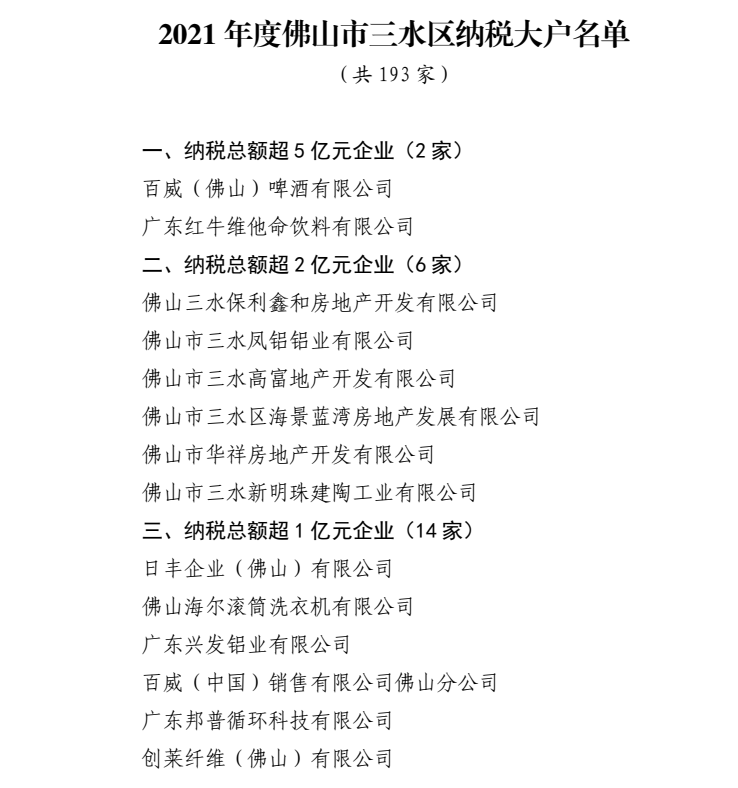 2021年度佛山市三水区纳税大户名单 2020年佛山三水区纳税大户