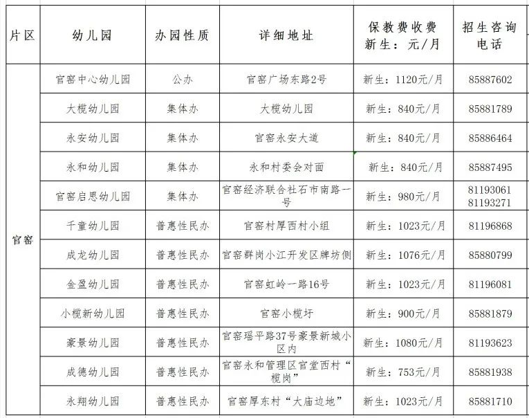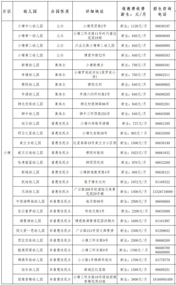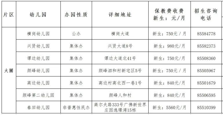 狮山镇幼儿园2022年秋季招生计划一览表: