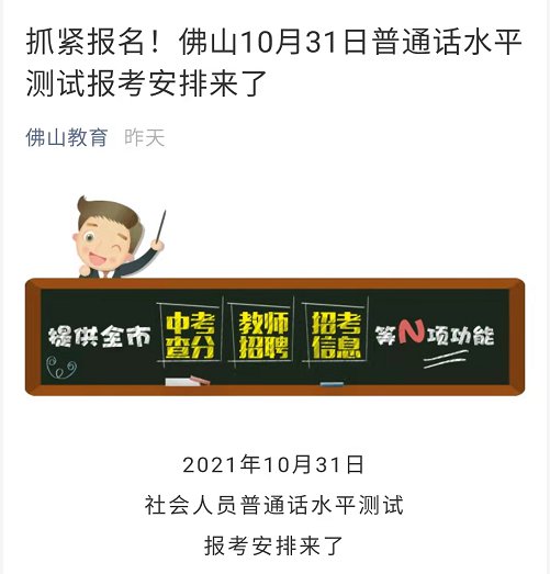 2021年10月31日佛山社会人员普通话水平测试报考安排来了。