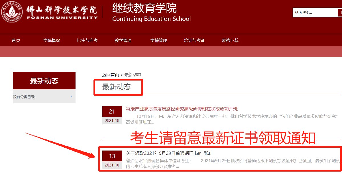 佛山普通话水平测试成绩、证书查询网址及证书领取:
