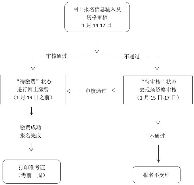 考生在完成网上信息输入后,报名系统会在1月14日-17日利用相关数据资源进行信息交互和比对,直接完成网上资格审核。网上审核通过的考生,不需要再进行现场审核,直接进入网上缴费环节。